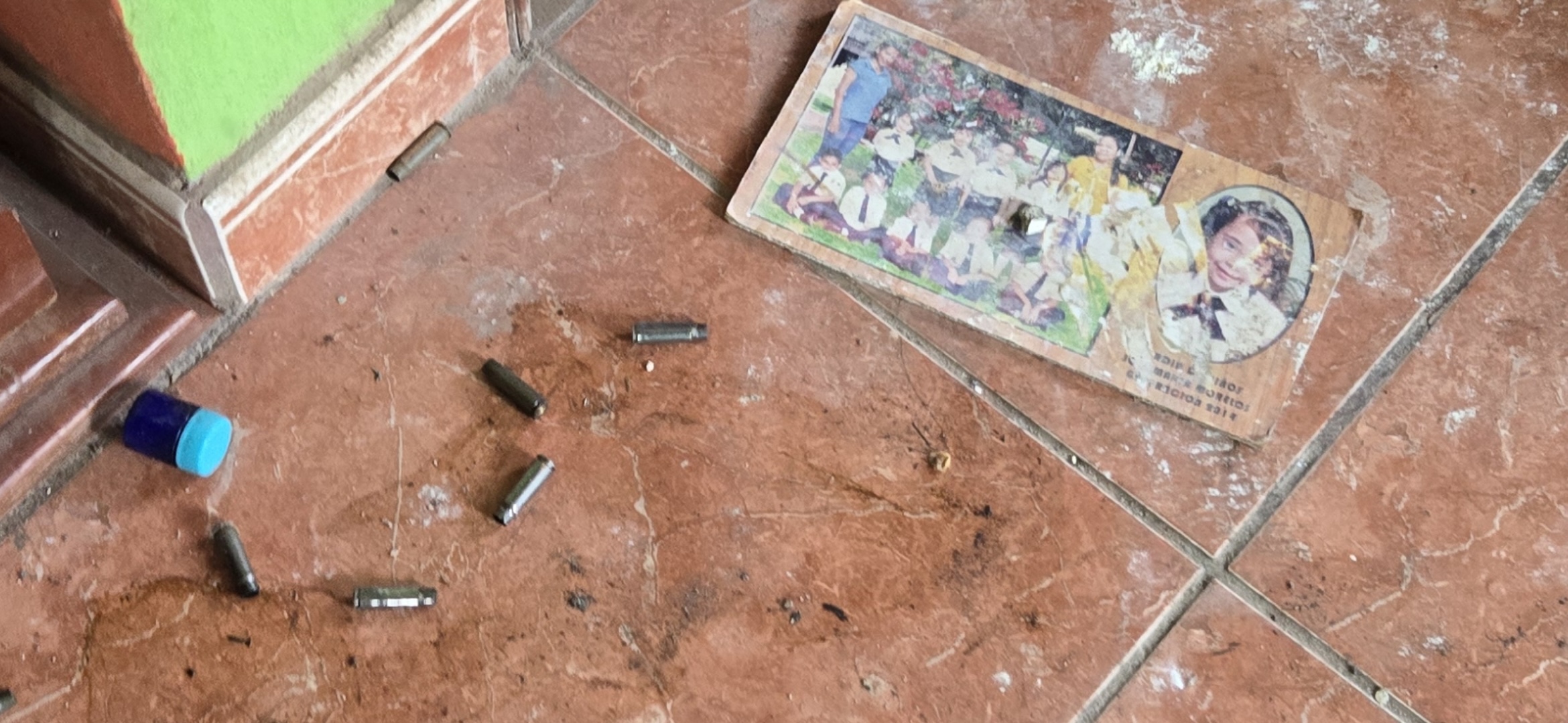 Bullets and an old school photo on the floor of a displaced El Guayabo resident’s house on July 30, 2025. Photo: Jared Olson/The Intercept